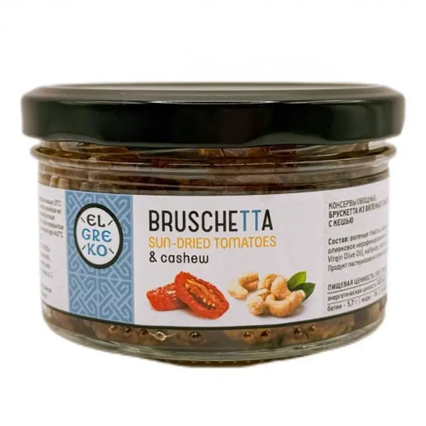 Состав: протертые вяленые томаты, кешью, оливковое масло, специи, соль.