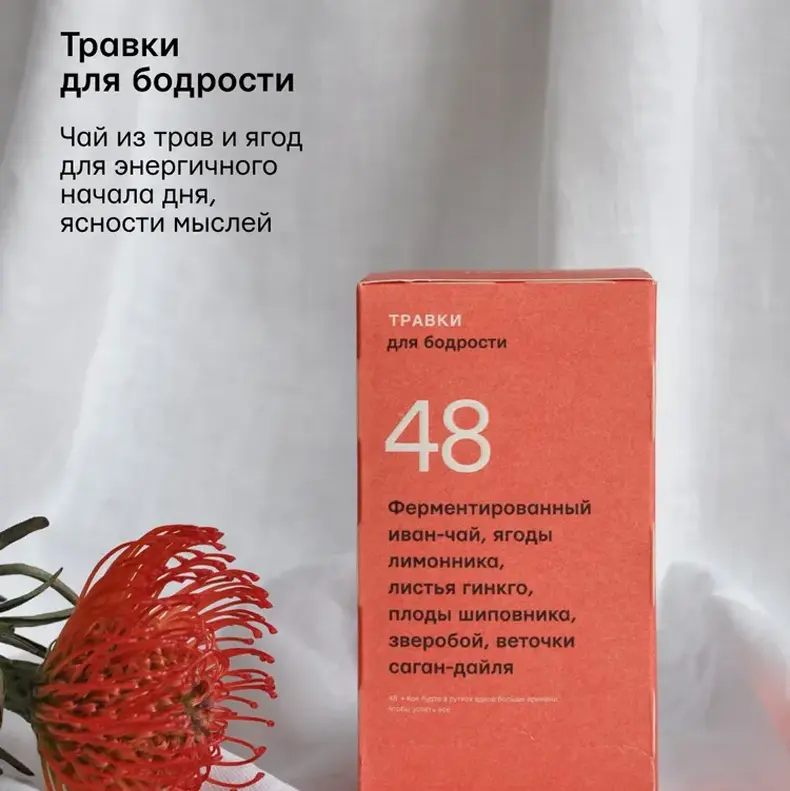 Чай из трав и ягод для энергичного начала дня и ясности мыслей. Терпкий вкус ферментированного иван-чая с кислинкой ягод лимонника и шиповника и ароматом саган-дайля.
