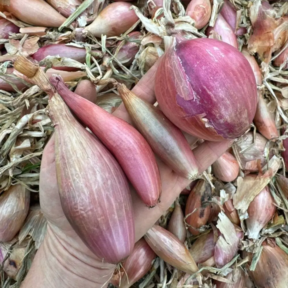 Лук-шалот — это вид мелкого репчатого лука с нежным кисло-сладким вкусом. Он меньше по размеру, вытянутый и состоит из долек, похожих на чесночные.