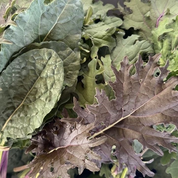 Микс нескольких сортов листовой капусты кейл. Вкус кейла нежно сладковатый, а запах напоминает шпинат и белокочанную капусту одновременно. Эта зелень содержит большое количество витаминов (А, С, К, РР, В1, В2, В6) и микроэлементов (натрий, магний, фосфор, калий и кальций). Кейл обладает уникальными противовоспалительными свойствами, снижает холестерин в крови и улучшает работу ЖКТ.