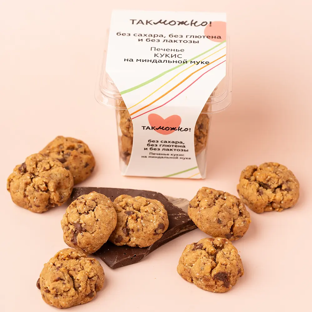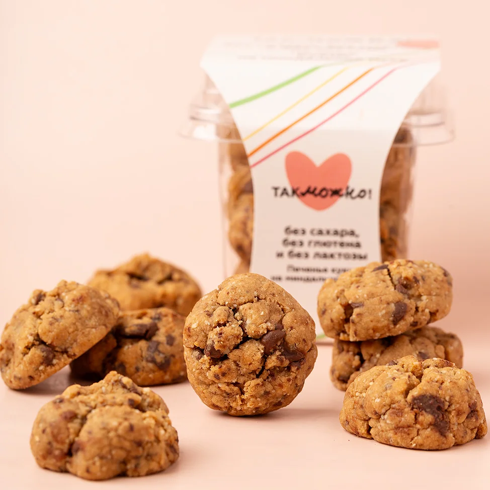 Особенно это печенье любят дети. Кусочки веганского шоколада без лактозы и сахара, тесто на миндальной муке - это печенье очарует Вас сразу!